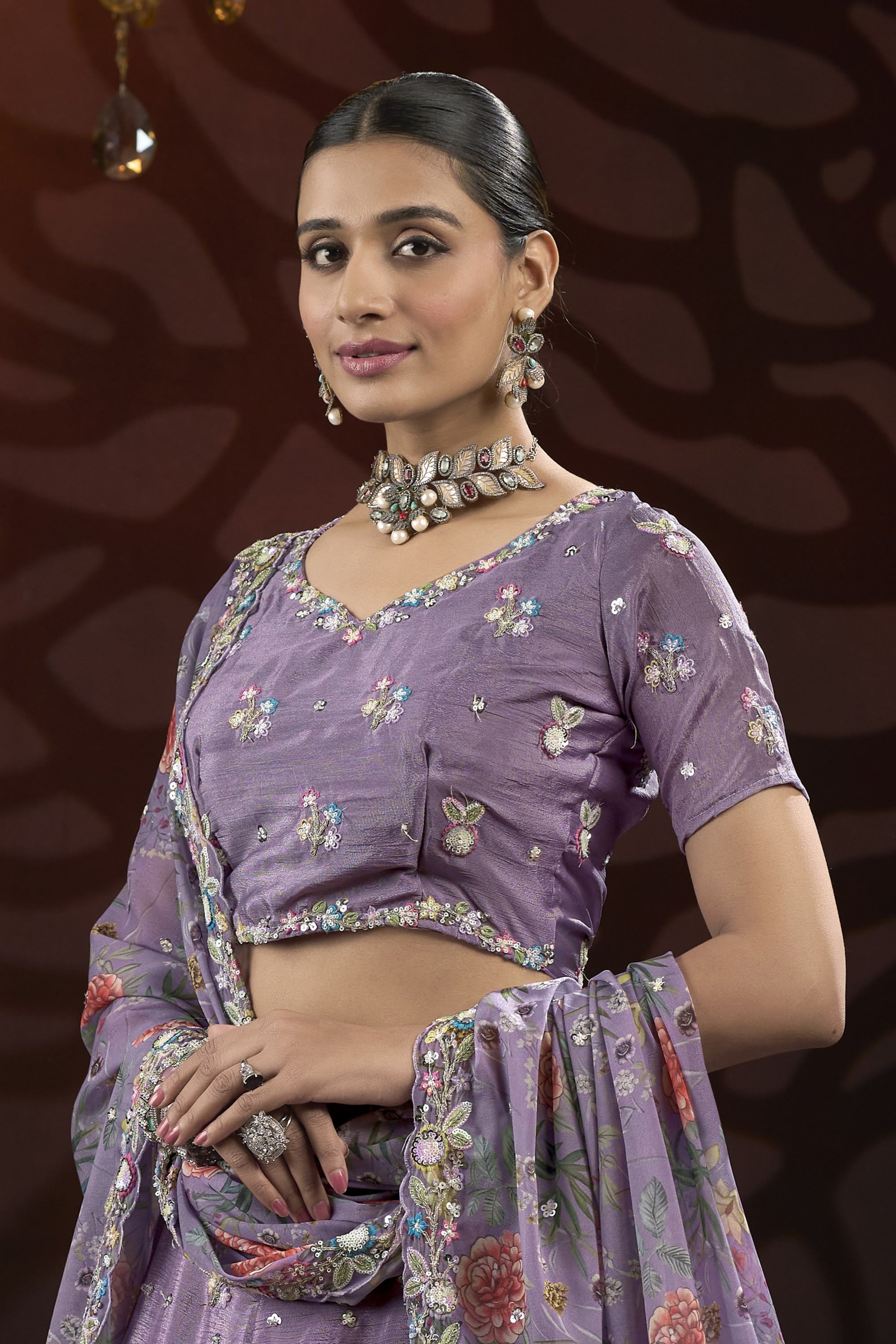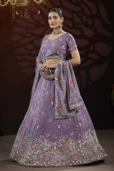 Sequins Work Wedding Wear Lehenga Choli In Purple Chinon Fabric