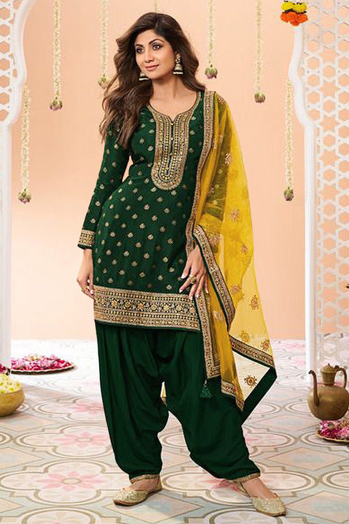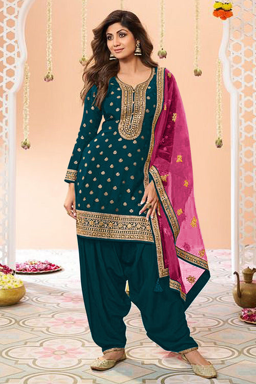 Experience the allure of tradition with a modern twist in the Shilpa Shetty Vibrant Embroidered Patiala Salwar Suit. Crafted from luxurious Jacquard Silk, this suit features intricate embroidery that adds a touch of sophistication and grace. Perfect for festive occasions and family gatherings, its breathable fabric ensures all-day comfort. The vibrant color palette is both eye-catching and elegant, making you stand out in any crowd. Elevate your wardrobe with this stunning Patiala salwar suit, a timeless piece that celebrates both heritage and contemporary fashion.