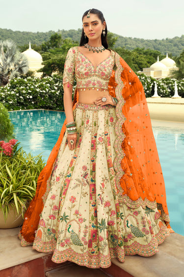 Silk Beige Wedding Wear Readymade Lehenga Choli