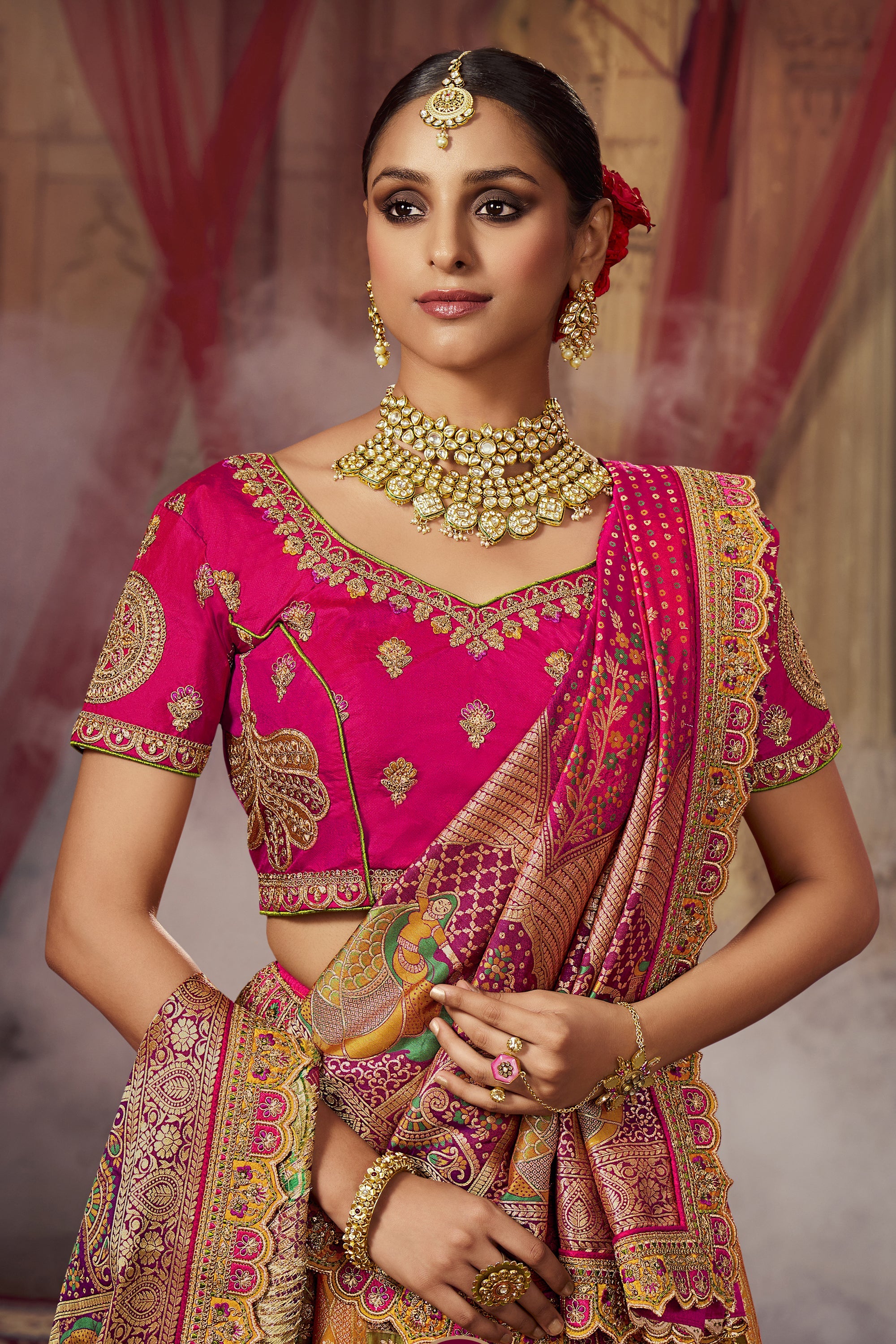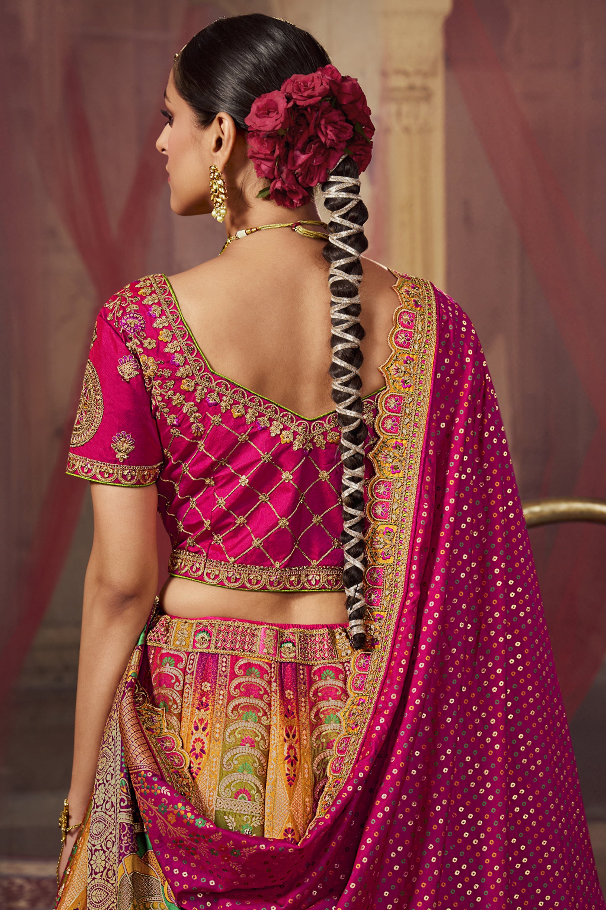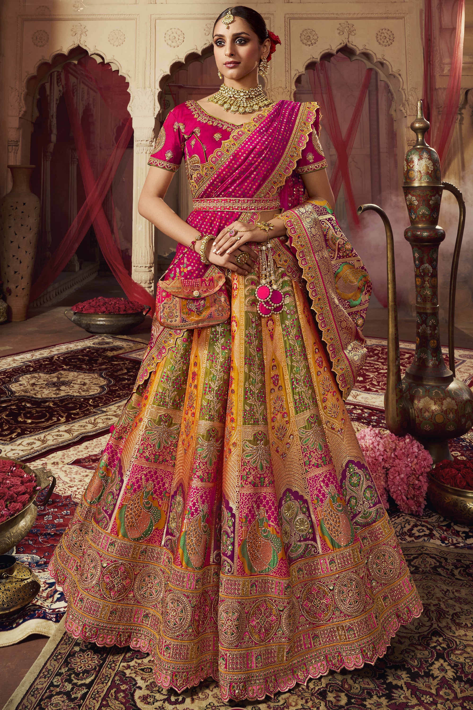 Silk Bridal Lehenga With Heavy Embroidery Work In Multi Color