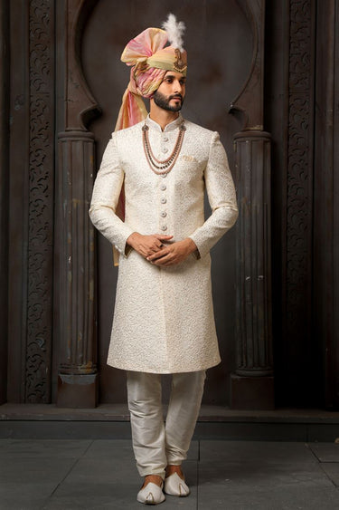 Silk Cream Wedding Wear Readymade Lovely Groom Sherwani For Men