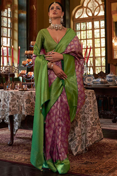 Silk Fabric Burgundy Color Saree With Winsome Weaving Work