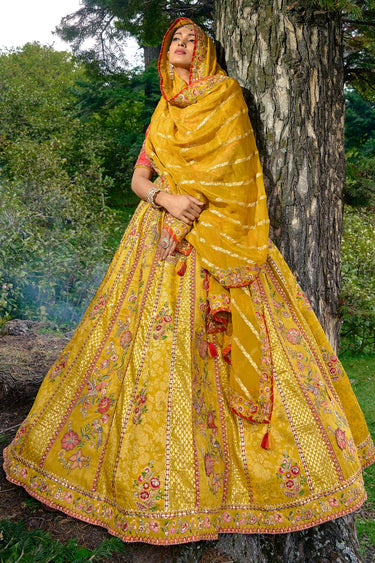 Silk Fabric Wedding Wear 3 Piece Lehenga Choli In Mustard Color With Embroidery Work