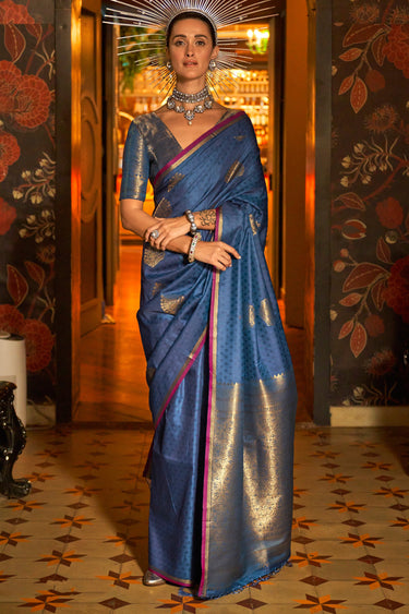 Silk Navy Blue Handloom Weaving Saree With Blouse