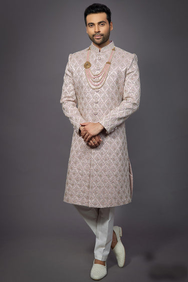 Silk Stunning Light Pink Color Wedding Wear Readymade Men Indo Western