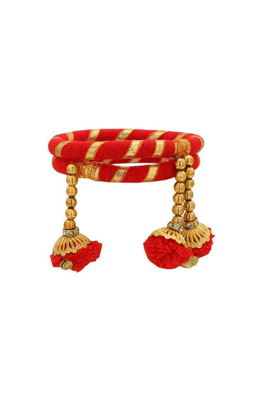 Silk Thread Red Color Customized Handmade Bangles With Pom Pom Latkan