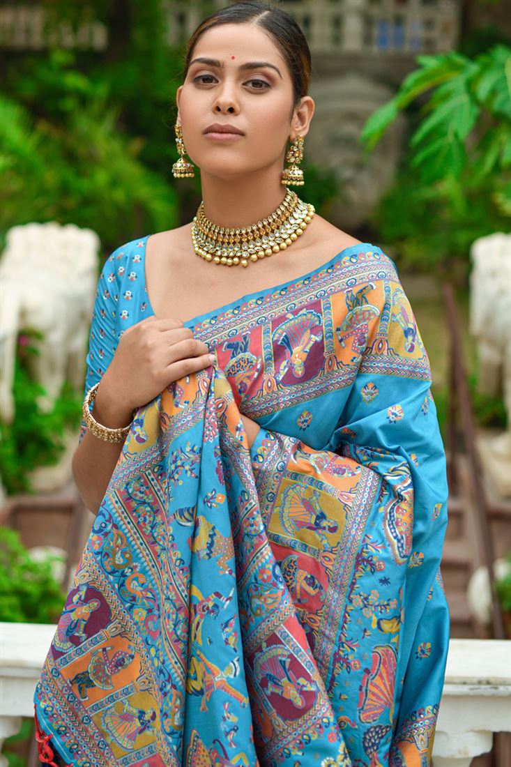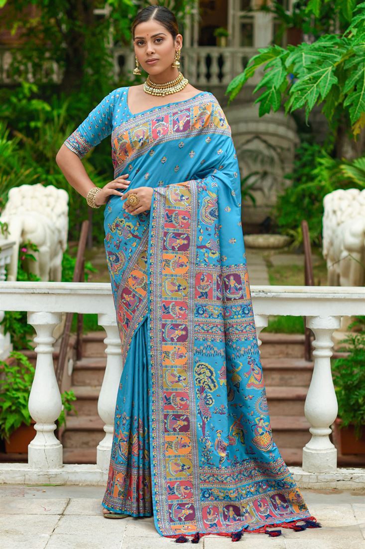 Sky Blue Color Art Silk Fabric Pretty Weaving Work Saree