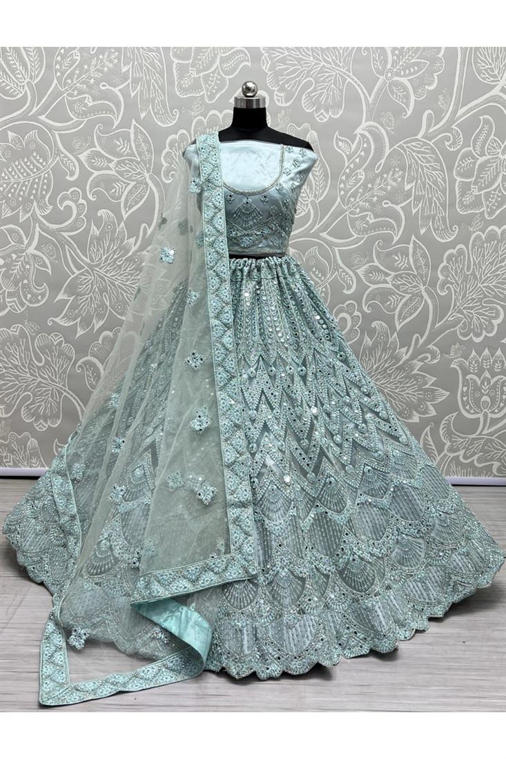 Sky Blue Color Wedding Wear Net Fabric Charismatic Bridal Lehenga
