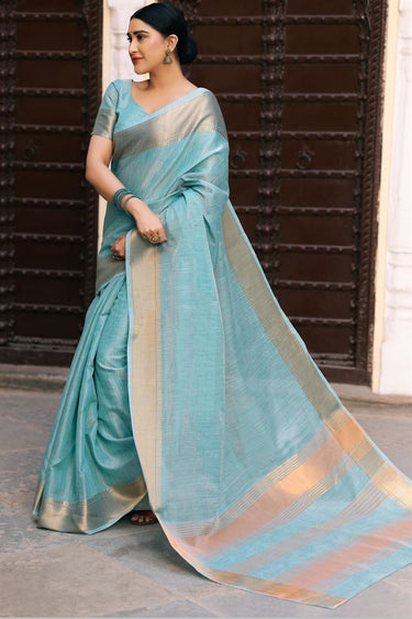 Sky Blue Linen Silk Saree With Zari Weaving
