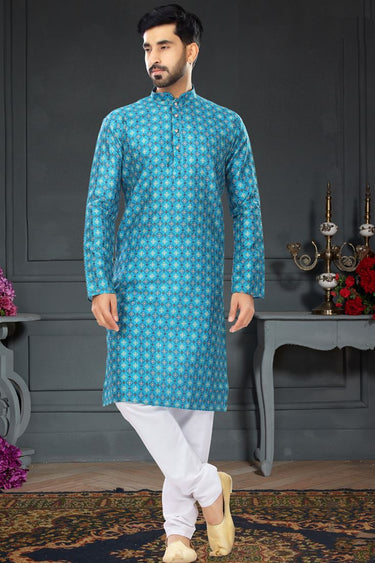 Sky Blue Readymade Kurta Pyjama In Printed Work