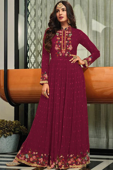 Sonal Chauhan Georgette Fabric Burgundy Color Attractive Anarkali Suit