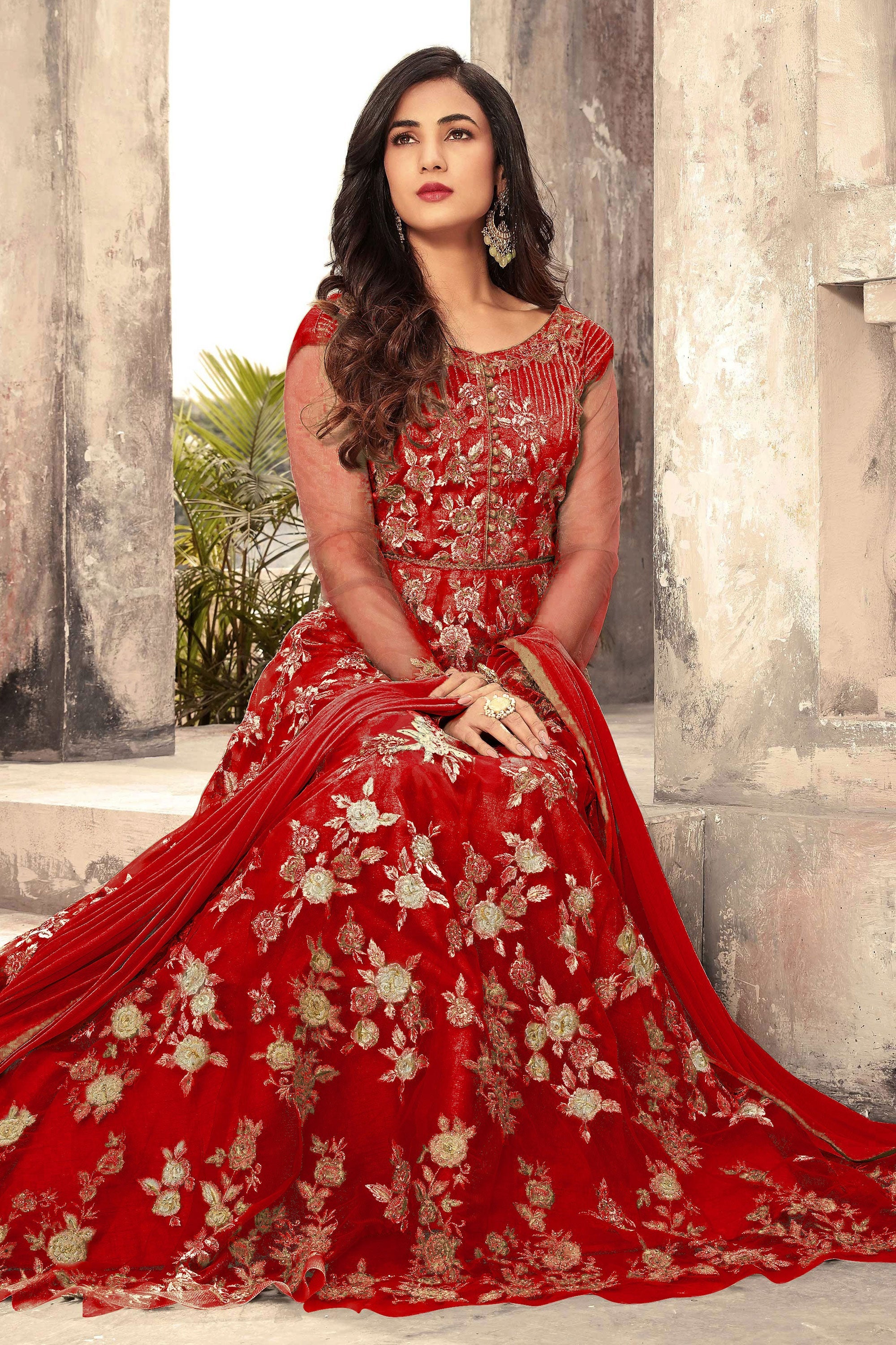 Sonal Chauhan Red Anarkali Suit In Georgette Fabric