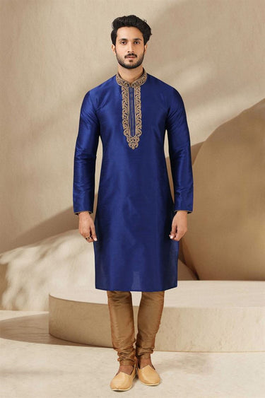 Stunning Blue Color Kurta Pyjama In Banarasi Art Silk Fabric