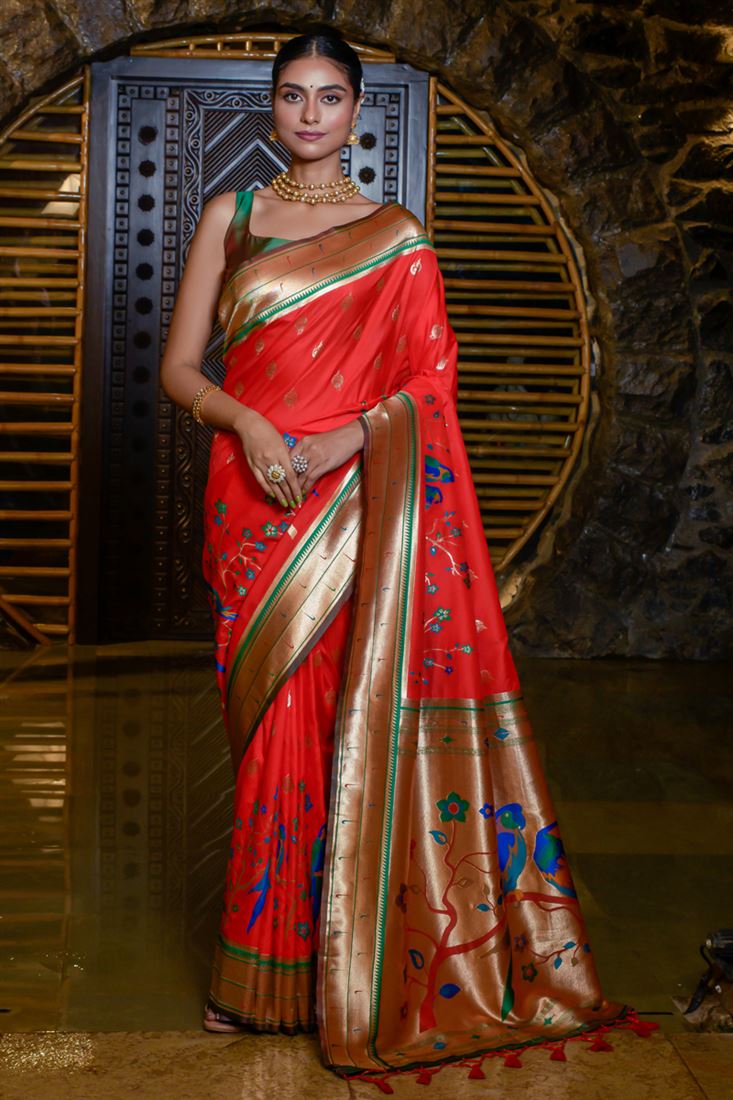 Stunning Paithani Silk Weaving Work Saree In Red Color