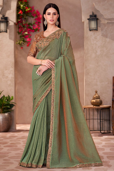 Stylish Georgette Fabric Saree In Sea Green Color With Border Work