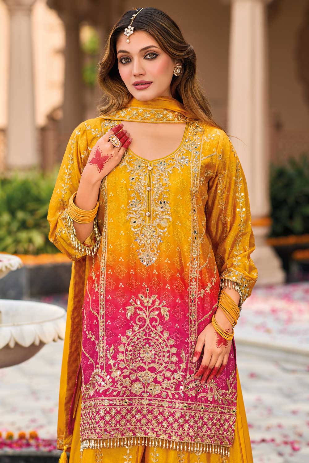 Stylish Mustard Color Chinon Fabric Readymade Palazzo Suit