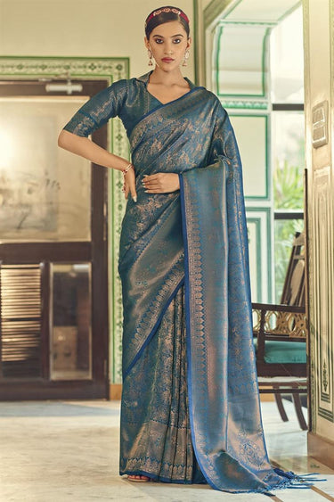 Teal Color Art Silk Fabric Patterned Weaving Work Saree