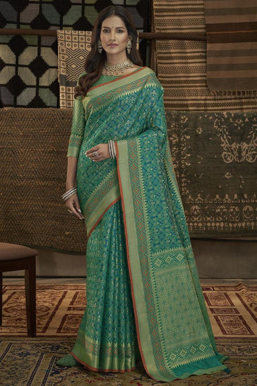 Teal Color Art Silk Ingenious Saree With Weaving Work