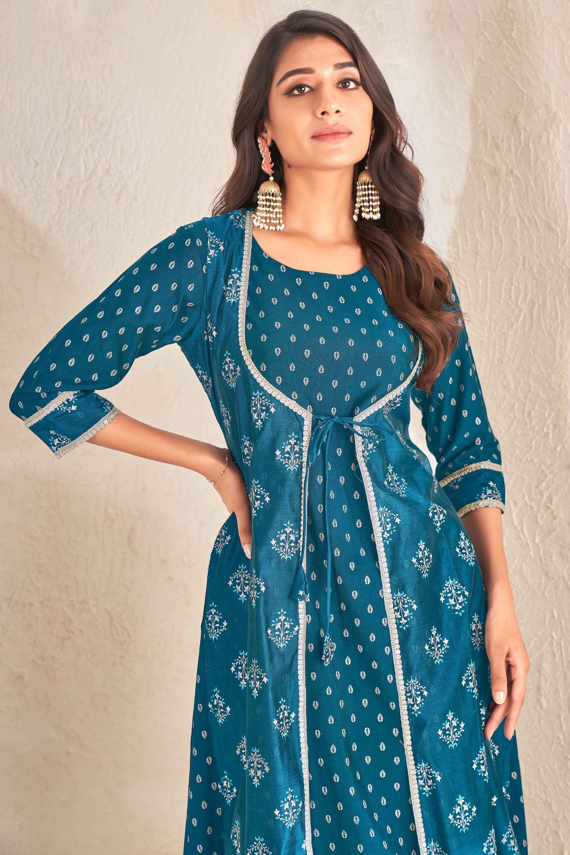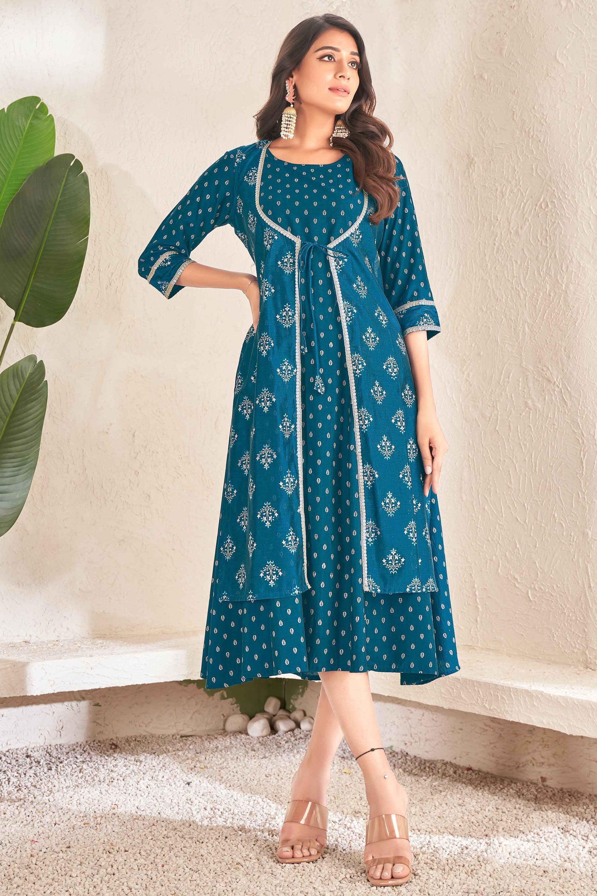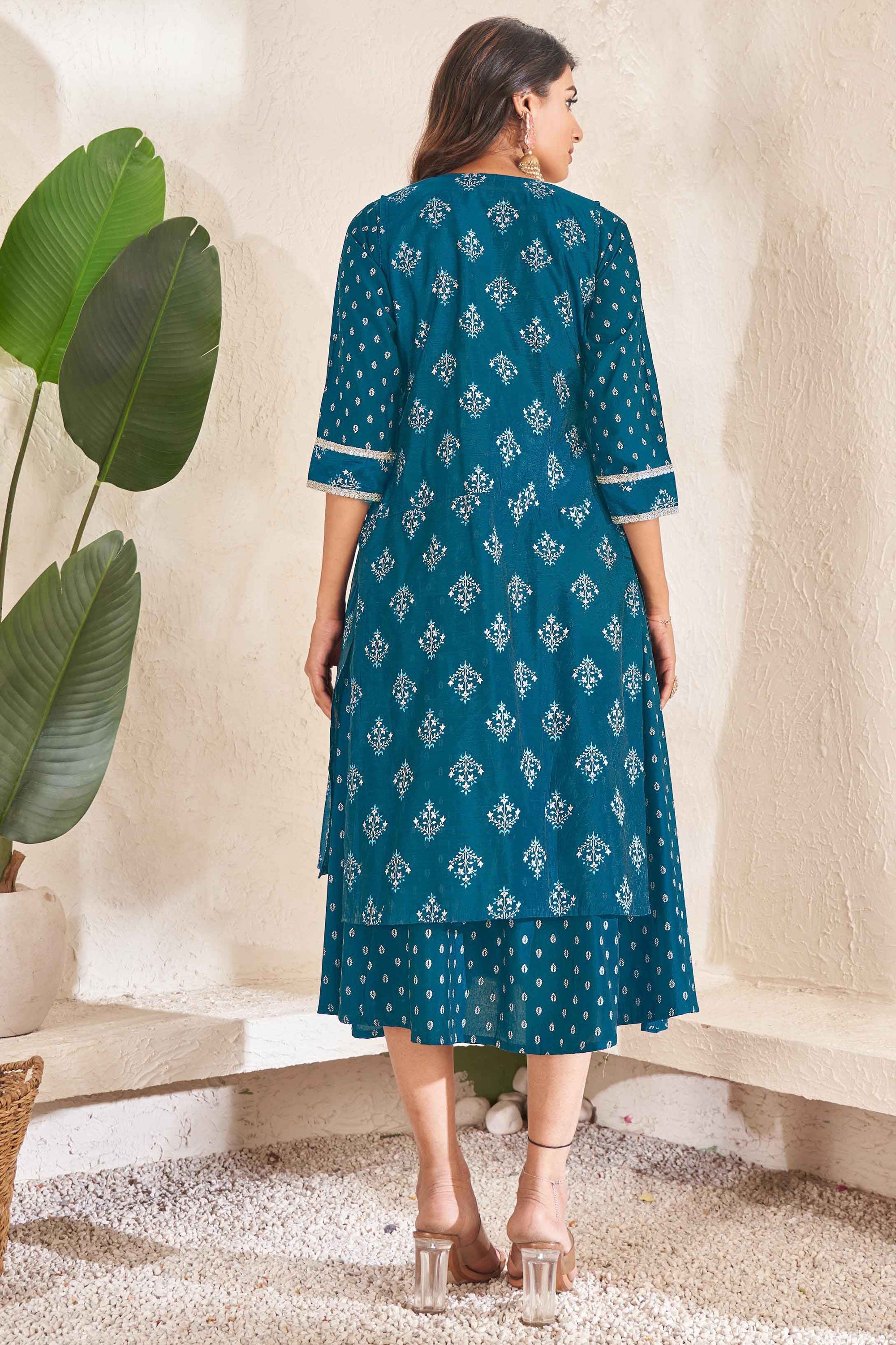 Teal Color Cotton Fabric Readymade Simple Kurti