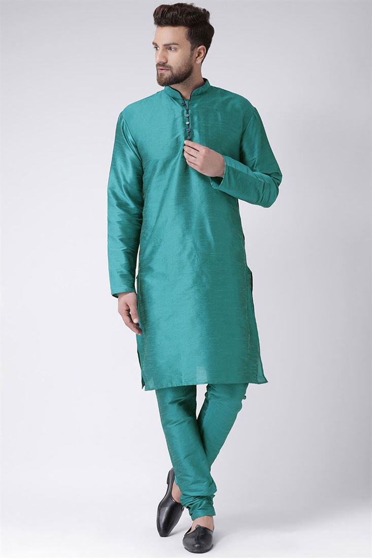 Teal Color Dhupion Silk Fabric Festival Wear Kurta Pyjama For Men
