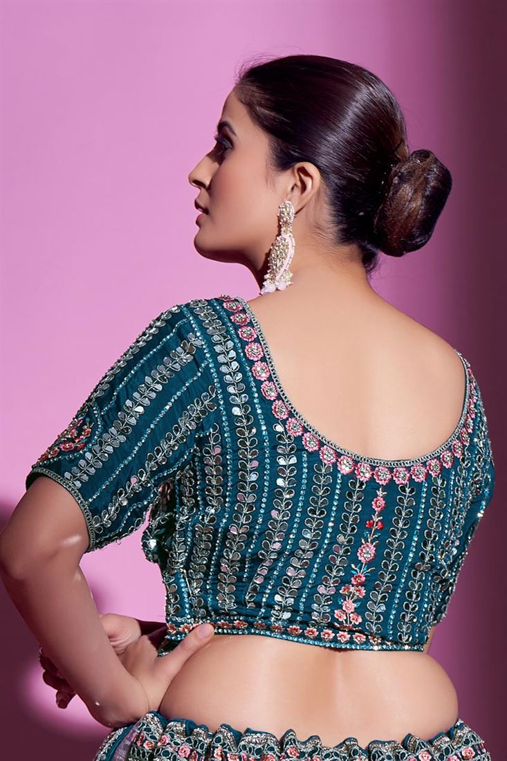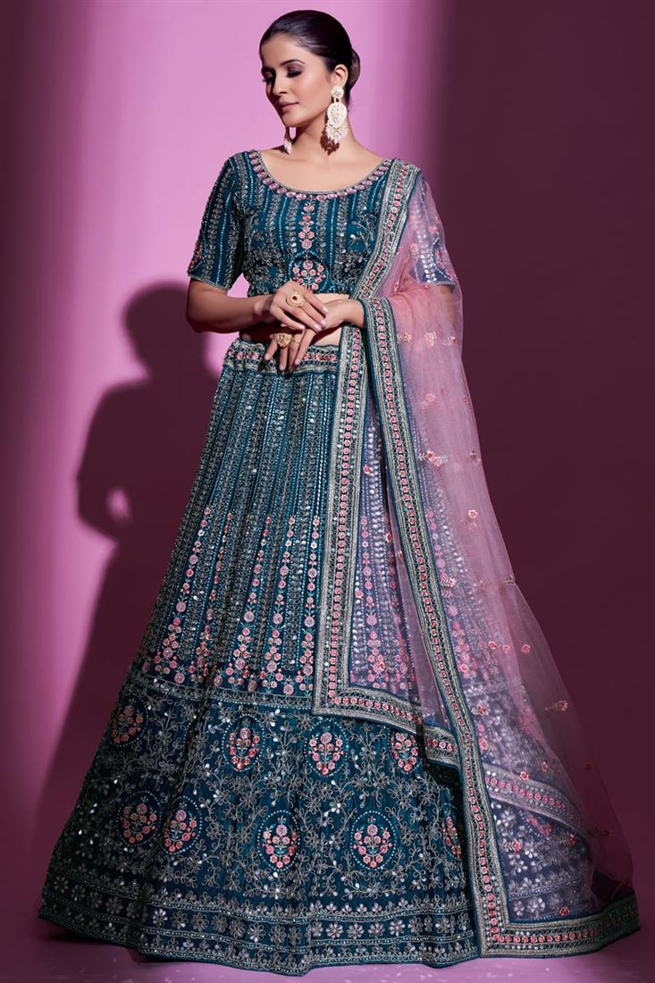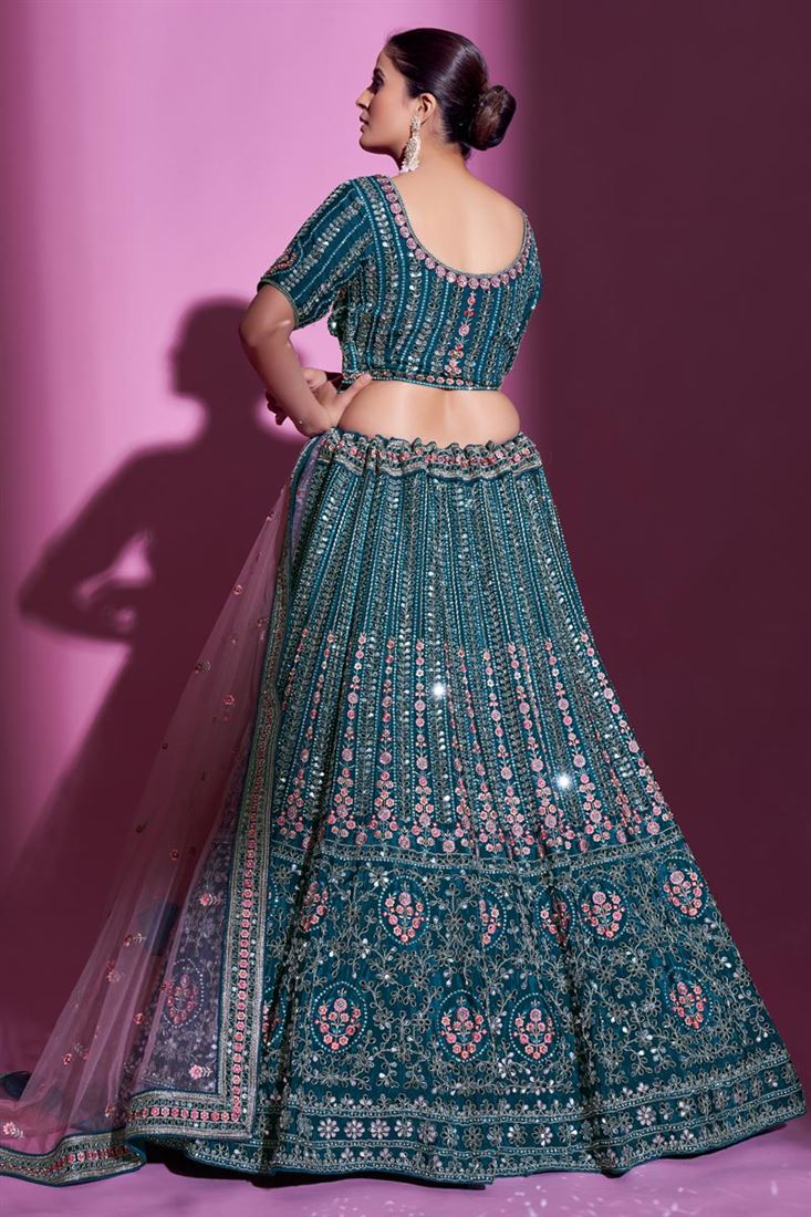 Teal Color Inventive Crepe Fabric Lehenga Choli In Wedding Wear