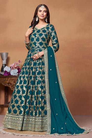 Teal Color Jacquard Fabric Function Wear Tempting Anaraklai Suit