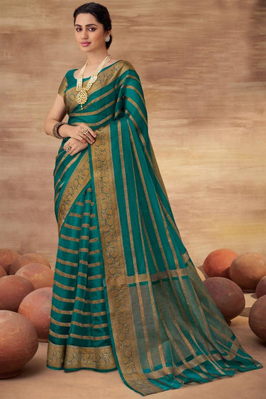 Teal Color Superior Organza Saree With Weaving Work