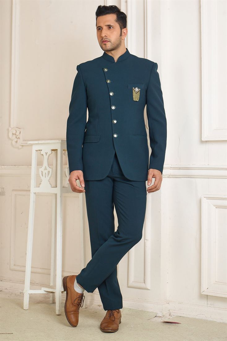 Teal Color Wedding Wear Jodhpuri Suit In Charming Fancy Fabric