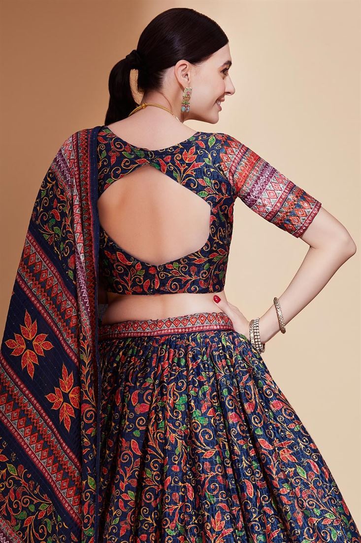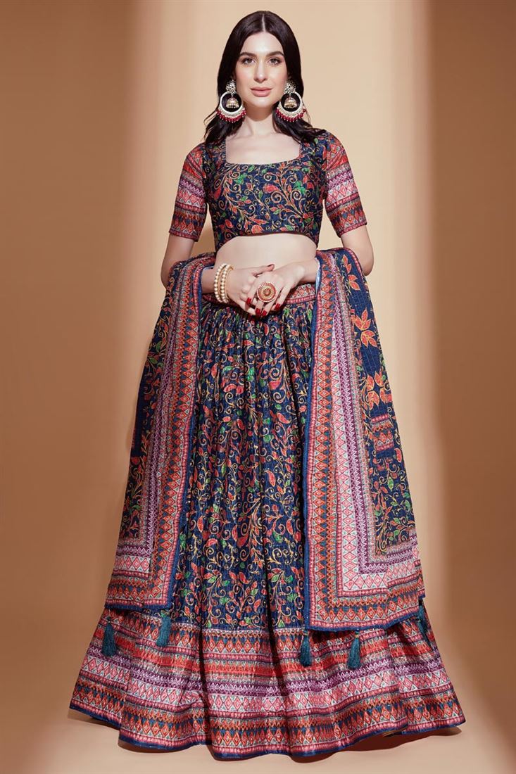 Teal Color Wonderful Printed Lehenga In Chinon Fabric