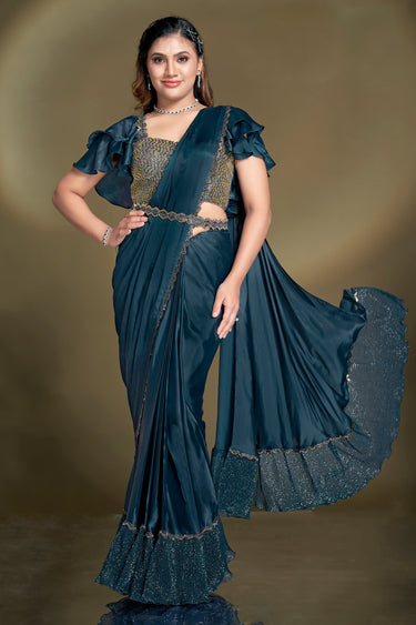 Teal Satin Silk Ready To Wear Saree