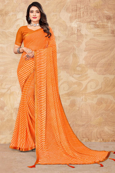 Tempting Chiffon Fabric Orange Color Casual Wear Saree