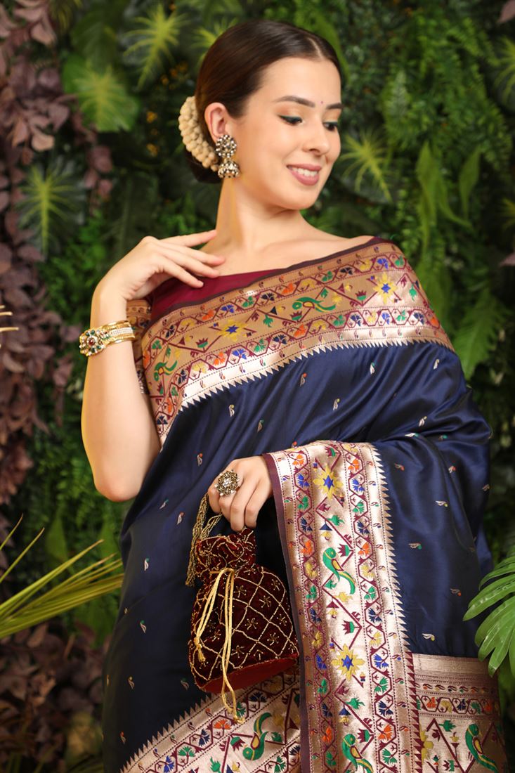 Tempting Navy Blue Color Festive Wear Paithani Silk Saree
