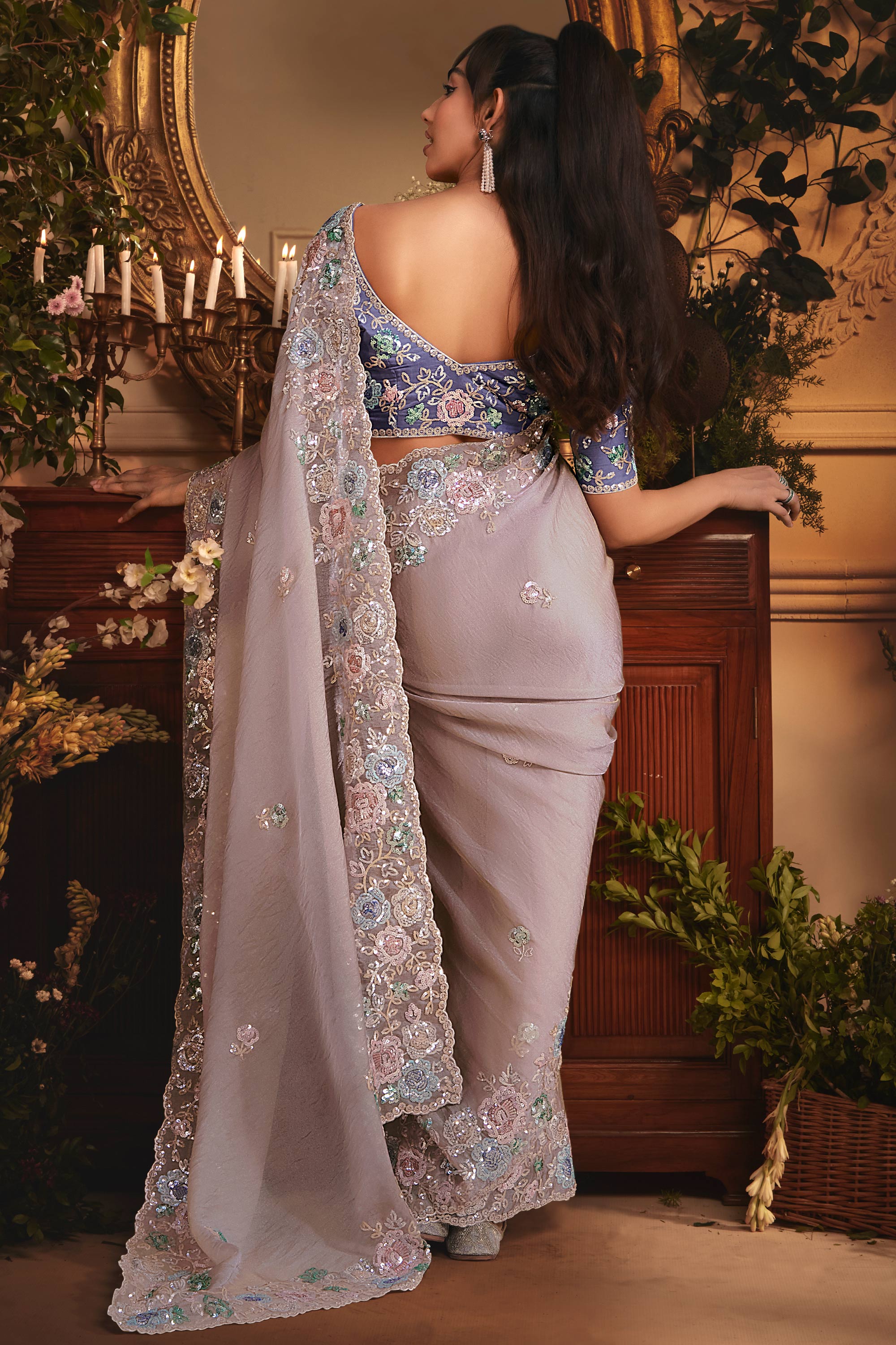 Add a touch of ethereal charm to your festive wardrobe with this elegant Designer Tissue Organza Saree. The sheer, lightweight tissue organza fabric lends a graceful flow and a soft shimmer, perfect for festive and function wear. Paired with a rich silk blouse, it creates a luxurious contrast that elevates the entire look. Intricately crafted border work enhances the saree’s refined appeal, making it an ideal choice for weddings, festivals, and special celebrations. Effortlessly stylish and delicately detailed, this saree is a timeless statement of sophistication. Note: Due to digital photography, slight color variations may occur