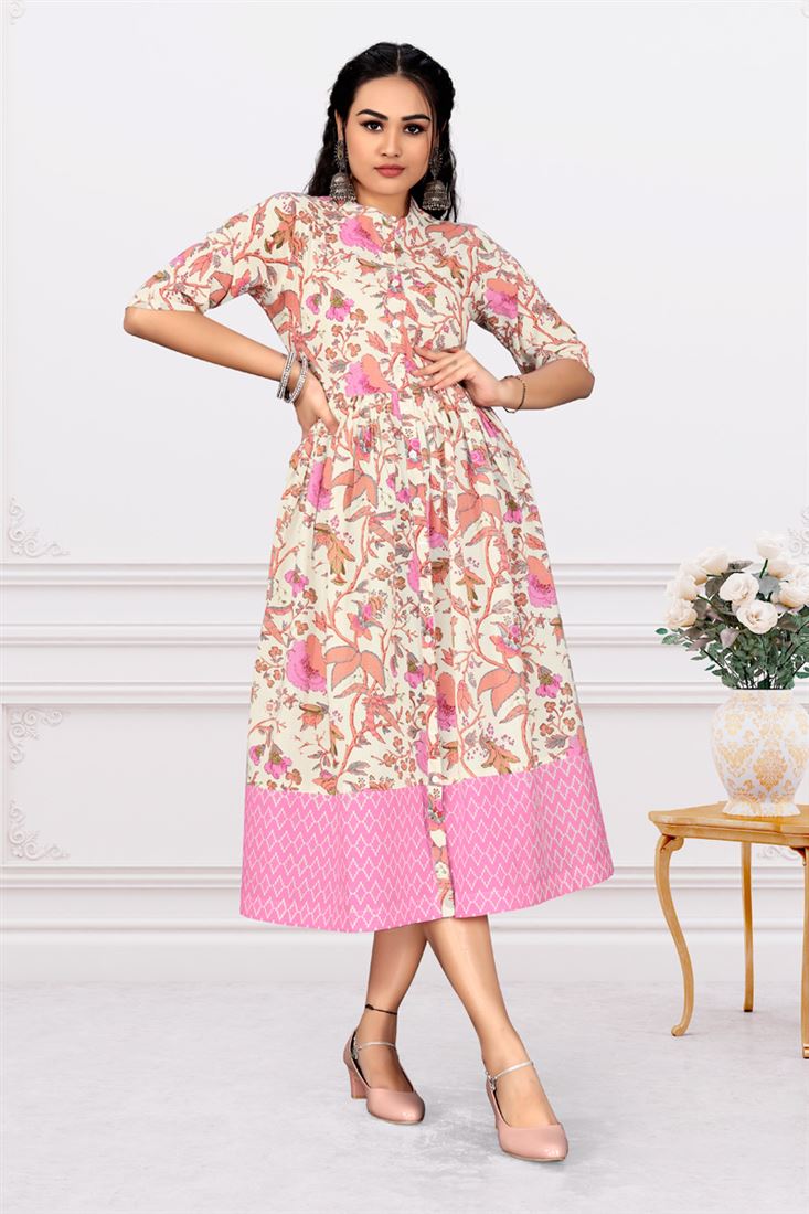 Tempting Pink Color Printed Cotton Kurti