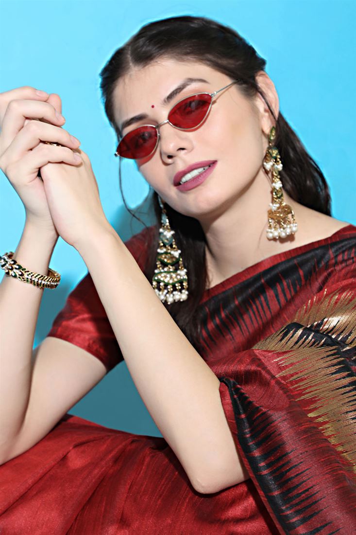 Introducing our exquisite Tussar Silk Red Color Saree, a stunning piece that will make you stand out at any festive occasion. Handcrafted with intricate weaving work, this saree showcases the timeless beauty of traditional Indian textiles.