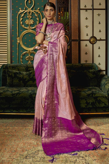 Tempting Weaving Designs Art Silk Fabric Peach Color Saree