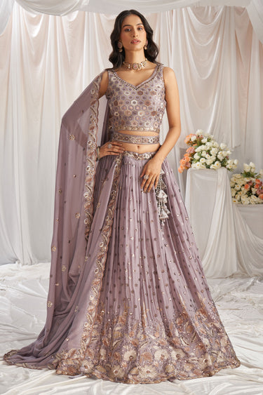 Thread Embroidery Poly Georgette Trendy Lehenga Choli In Lavender Color