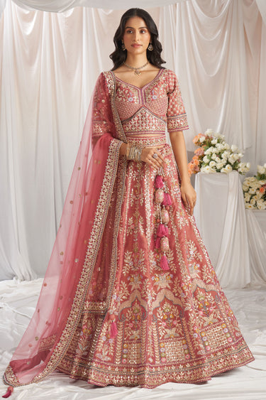 Tissue Rose Gold Embroidered Trendy Lehenga Choli