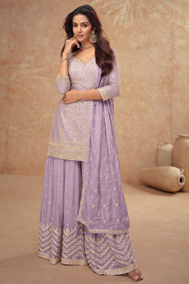 Traditional Lavender Color Chinon Fabric Readymade Palazzo Suit