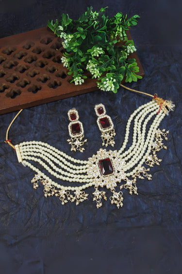 Traditional Maroon Color Alloy Material Necklace With Earrings and Mang Tikka