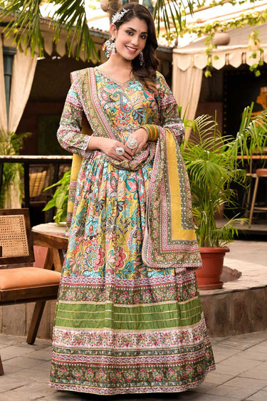 Traditional Multi Color Dola Silk Readymade Anarkali Suit