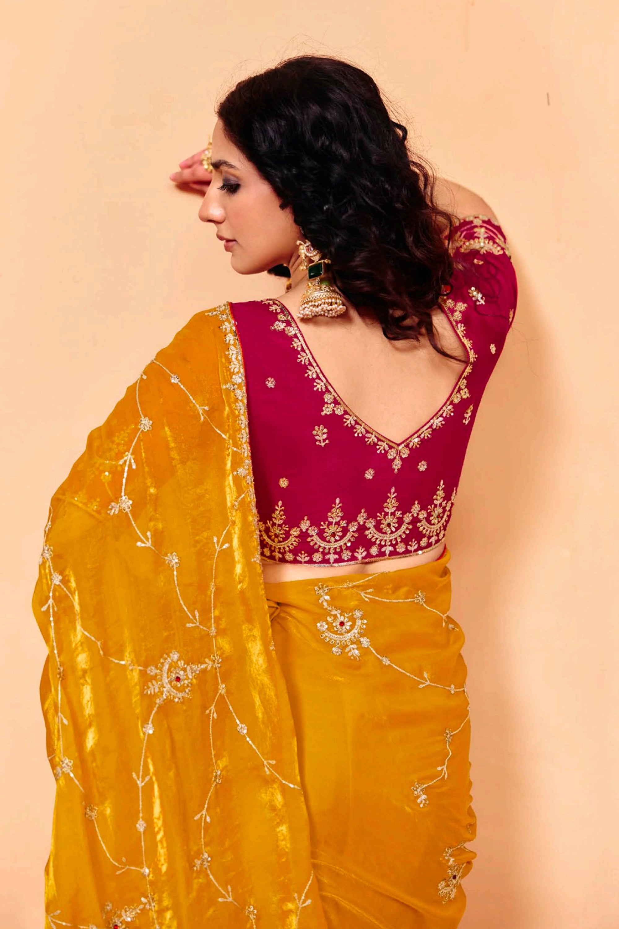 Add a touch of elegance to your ethnic wardrobe with this stunning Tissue Silk Saree, perfect for Sangeet celebrations. Designed with an intricate embroidered border, this saree captures traditional artistry in a modern style. Crafted from lightweight yet luxurious tissue silk, it offers both comfort and glamour for special occasions. Paired with an unstitched blouse, it allows you to customize the fit and design as per your preferences. Make every moment unforgettable in this gorgeous ensemble that reflects the charm of timeless craftsmanship. Ideal for weddings, festive gatherings, and cultural events, this saree is a must-have addition to your collection.