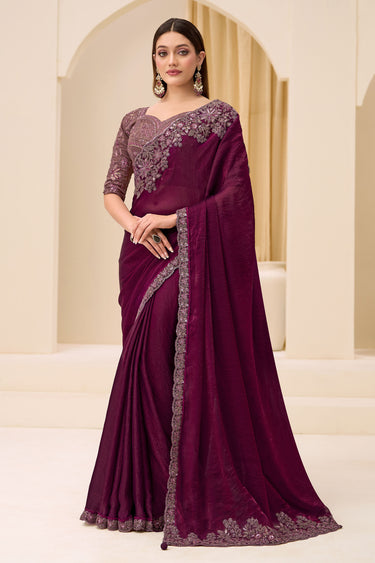 Traditional Wine Satin Silk Saree With Stylish Blouse Piece