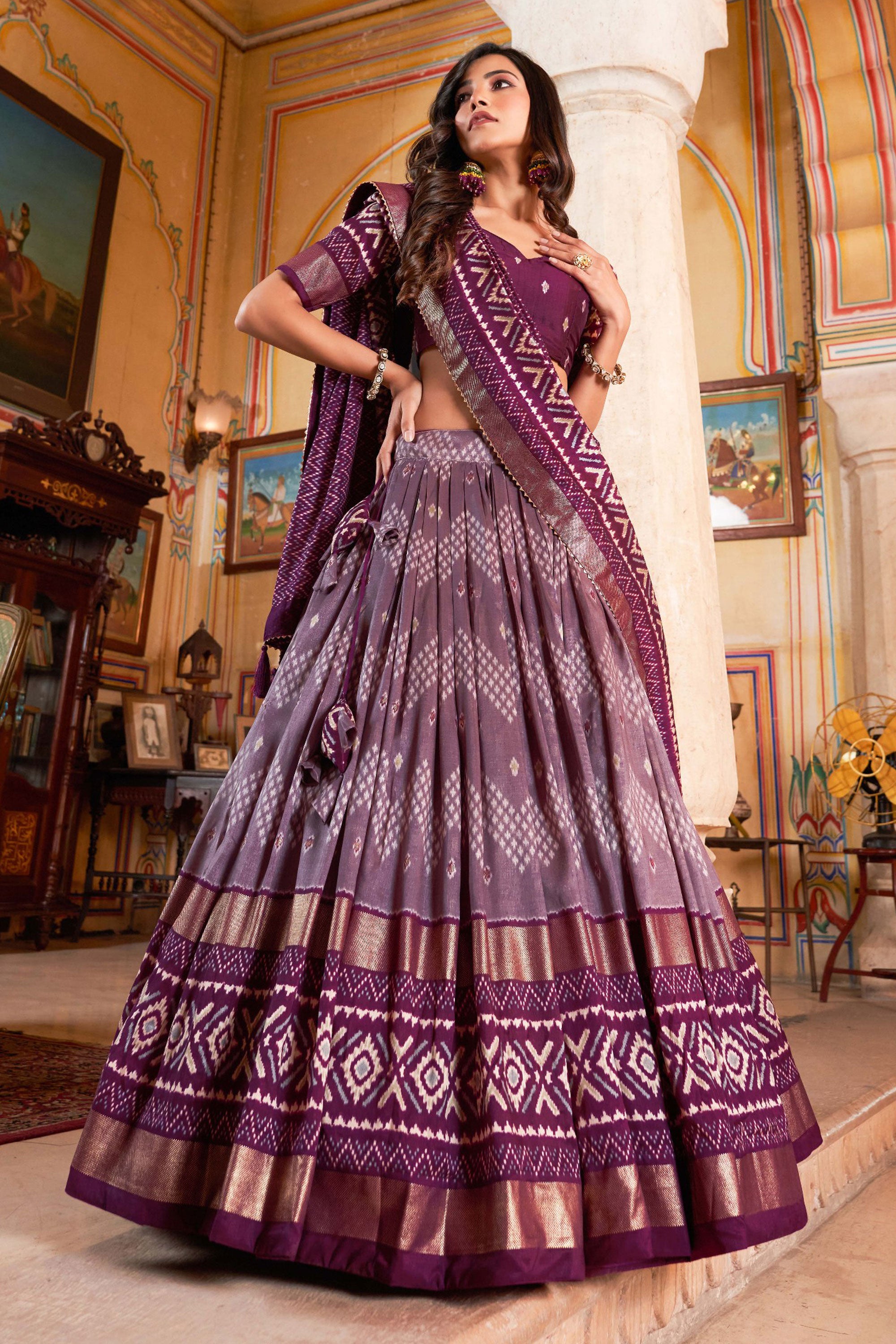 Trendy Art Silk Fabric Purple Color Lehenga With Foil Printed Work