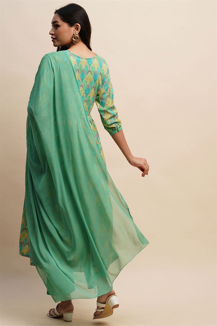 Crafted with attention to detail and precision, this Sea Green Salwar Suit offers both style and durability. The cotton fabric ensures easy maintenance and longevity, making it a reliable addition to your collection.