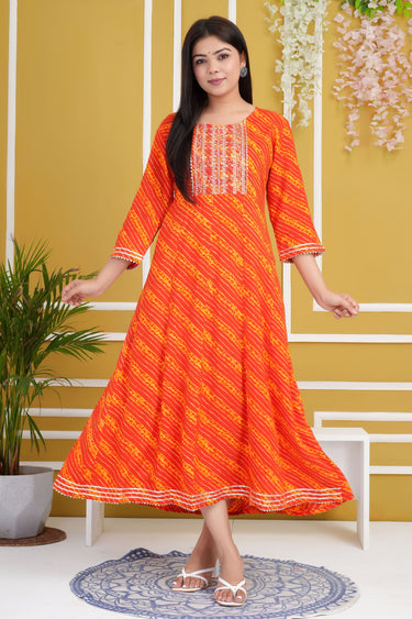 Trendy Cotton Rayon Fabric Orange Color Readymade Kurti