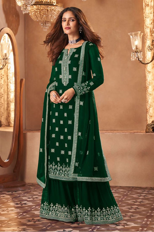 Trendy Festival Wear Green Color Georgette Fabric Palazzo Suit Featuring Vartika Singh