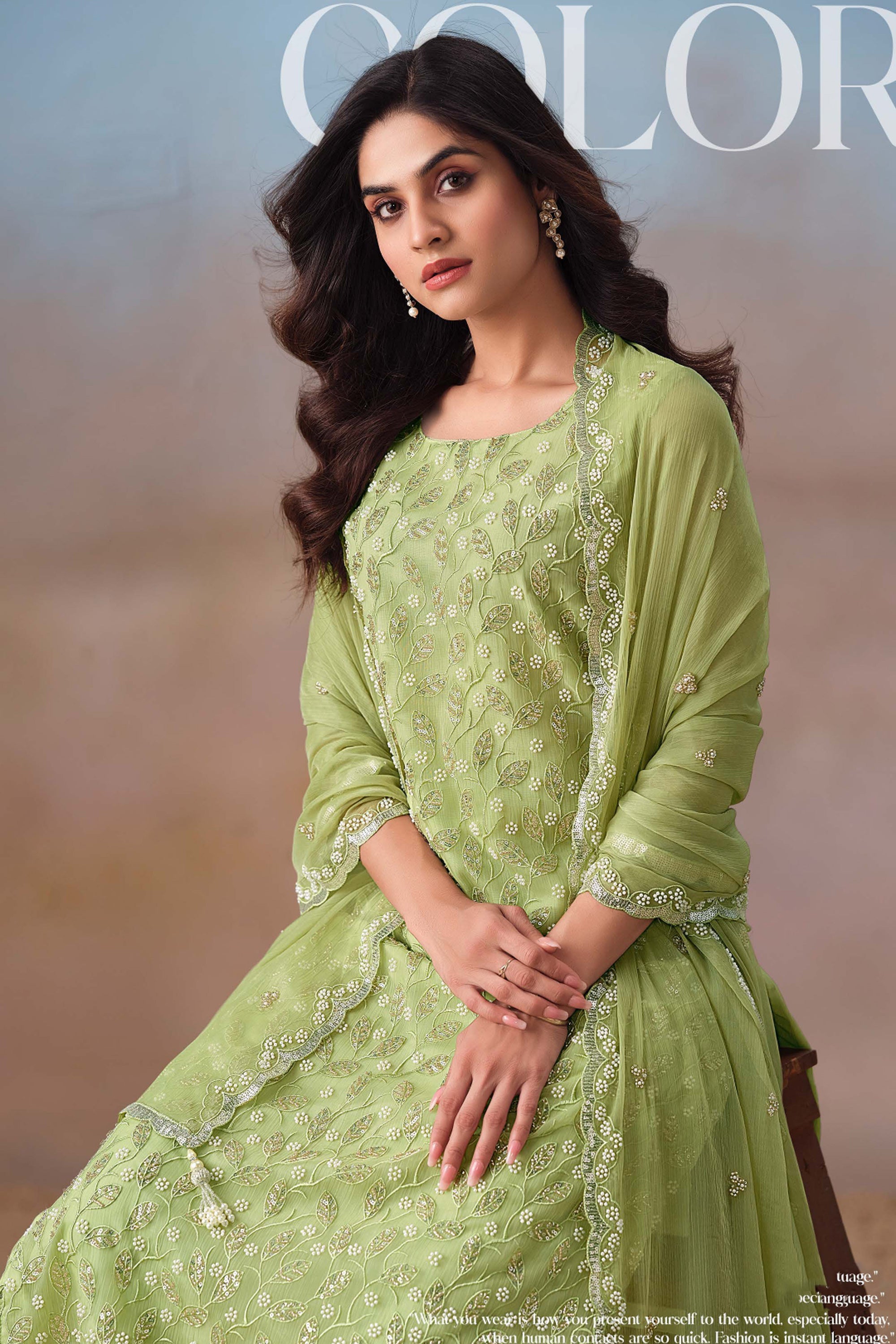Trendy Green Color Chiffon Fabric Salwar Suit