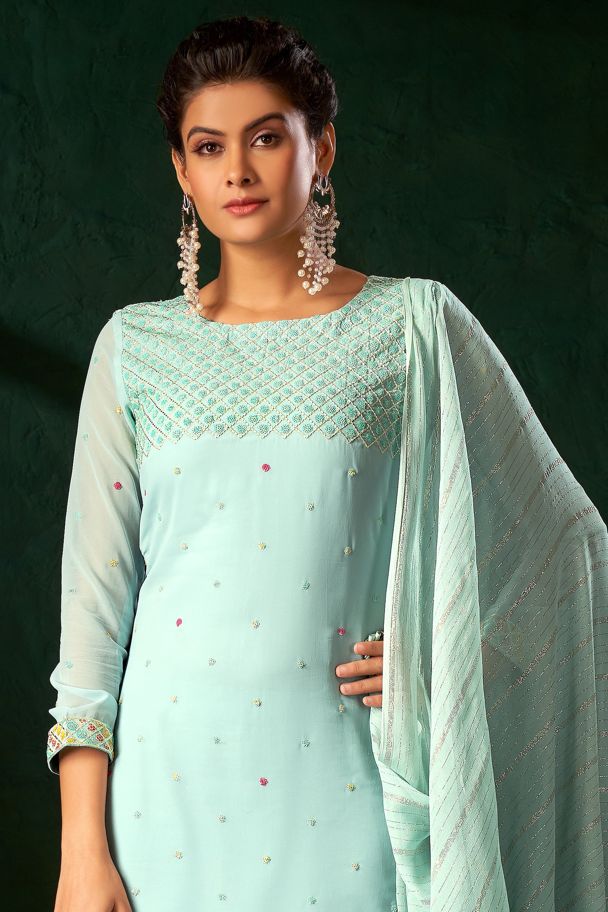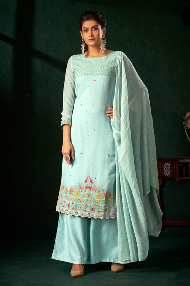 Trendy Light Cyan Color Viscose Palazzo Salwar Suit