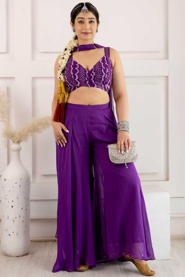 Trendy Viscose Fabric Purple Color Indo Western palazzo Suit